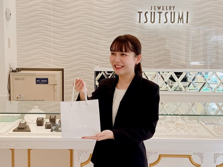 入社をする前、ジュエリーの知識はほとんどありませんでしたが、お客様に笑顔を届けるお仕事がしたいと思い、ツツミに入社をしました。